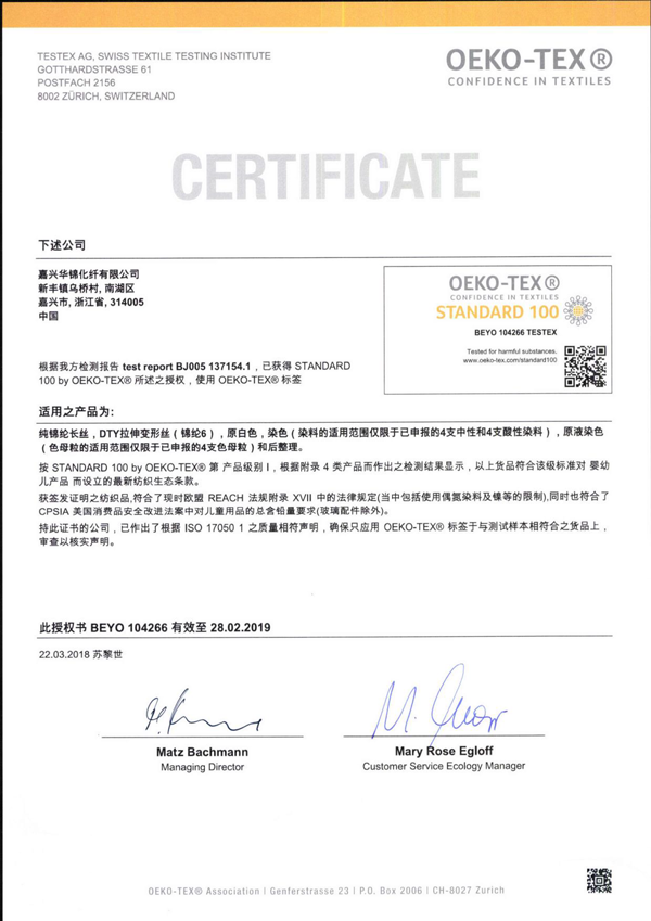 OEKO-TEX Standard 100 是1992年OEKO-TEX國(guó)際環(huán)保紡織協(xié)會(huì)制定的?,F(xiàn)在有16個(gè)檢測(cè)協(xié)會(huì),它們的主要任務(wù)是檢測(cè)紡織品的有害物質(zhì)已確定它們的安全性。OEKO-TEX Standard 100現(xiàn)在是使用最為廣泛的紡織品生態(tài)標(biāo)志。OEKO-TEX Standard 100規(guī)定的標(biāo)準(zhǔn)是根據(jù)最新的科學(xué)知識(shí),對(duì)紗線、纖維以及各類(lèi)紡織品的有害物質(zhì)含量規(guī)定限度。只有按照嚴(yán)格檢測(cè)和檢查程序提供可證明質(zhì)量擔(dān)保的生產(chǎn)商才允許在他們的產(chǎn)品上使用OEKO-TEX 標(biāo)簽。